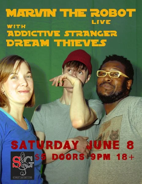 It's as hard to peg Marvin the Robot down to a style of music as it is to peg Miles -- the brains, voice, and sole perpetrator of the project -- down to a schedule, but I've found you can't go wrong with a barrage of loosely defining descriptive words: disturbing yet humorous, impatient indie-rock with a twinge of dark mystery and a lot of lo-fi sound. It's hard to leave a Marvin the Robot show with a frown on your face, which makes it easy to become addicted to the experience.